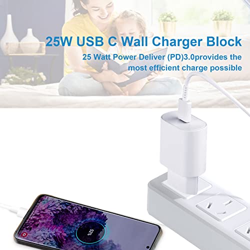 Ricarica super rapida da 25 W: il caricabatterie rapido da 25 W può fornire fino a 3 A di corrente per Samsung Galaxy S20 / S20 + / S20 Ultra / S21 / S21 + / S21Ultra / S22 / Note 10 / Note 20, richiede solo 30 minuti per caricare il 55%, solo 1 ore completamente carica.