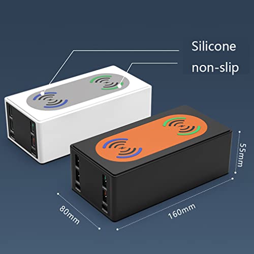 【VITA CONFORTEVOLE】 16 * 7,9 * 5,3 cm, pesa 450 g. Design antiscivolo nella parte inferiore, impedisce lo scivolamento e puoi fissarlo alla scrivania con silicone. Le sei porte e la ricarica wireless a traino possono far funzionare tutti i dispositivi elettronici sul mercato. Questo caricabatterie multiporta è comodo per tutta la famiglia per caricare i propri smartphone e tablet in aeroporti, hotel, a casa, ecc.