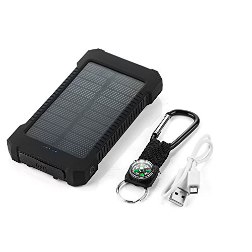 Caricabatterie Solare Portatile 10000mAh Batteria Esterna (Plastica + Silicone) Impermeabile Powerbank Solar per Apple iPhone6/6 Plus, iPad Air 2, Samsung Galaxy S6/S6 Edge ecc