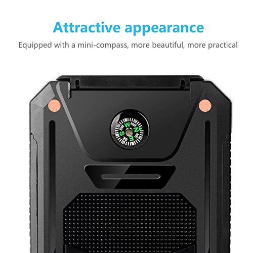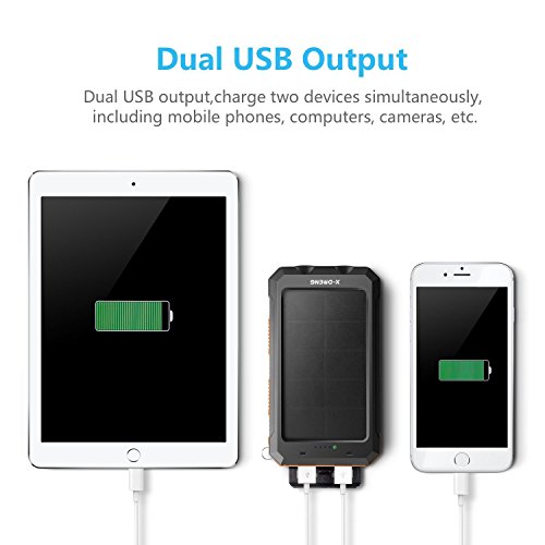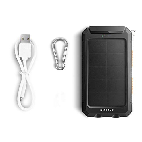 Caricabatterie solare, X-DNENG 10000mAh Caricabatterie Portatile, 2 Porte USB con 2 LED Torcia Caricabatterie Portatile con Bussola e Carabiner per iPhone, iPad, telefono cellulare, tablet, fotocamera, impermeabile all'acqua e alla polvere e resistente agli urti - Orange