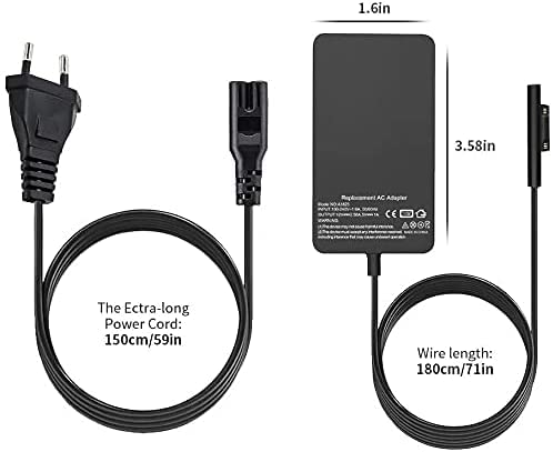 Caricatore Surface Pro compatibile con Surface Laptop 4/ Laptop 3/ Laptop 2/ Laptop 1, Surface Laptop Studio, Surface Laptop Go, Surface Pro 8, Surface Pro X, Surface Pro 7, Surface Pro 6, Surface Go/Go 2/Go 3, Surface Pro 5 (2017), Surface Book/Book 2, Surface Pro 4, Surface Pro 3, Caricabatterie adattatore di alimentazione modello Microsoft 1706 1800 1625.