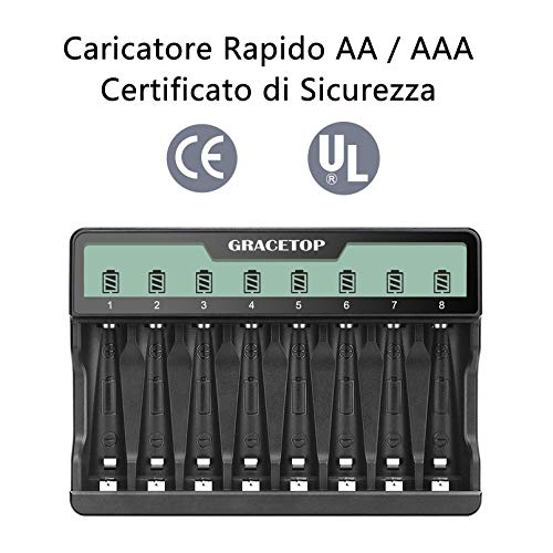 Caricabatterie Universale Caricabatterie a 8 slot con LCD Intelligente Caricabatterie USB per Ni-MH AA AAA Batterie Ricaricabili con Manuale Inglese