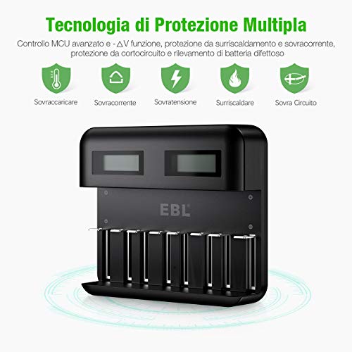 EBL 9008 Caricabatterie Universale 8 slot per AA e AAA C e D Batterie Ricaricabili con LCD Display e Porta USB,Multipla Caricabatterie con Tecnologia di Rilevamento Intelligente