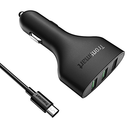 Caricabatterie Auto Veloce [Include 2 Cavi Micro USB 1 metro] Tronsmart 3 porte 42W (2 Porte Quick Charge 2.0 + 1 Porta VoltIQ) per Samsung Galaxy S7/S7 Edge, S6/S6 Edge, S5, Huawei P8 e Mate 8 e tutti i dispositivi con connettore Micro USB, Nero