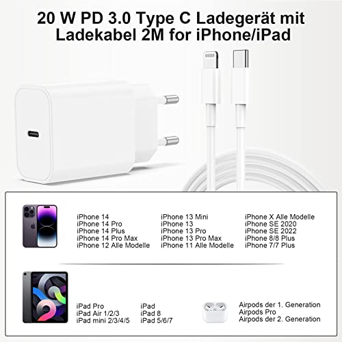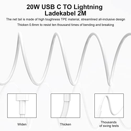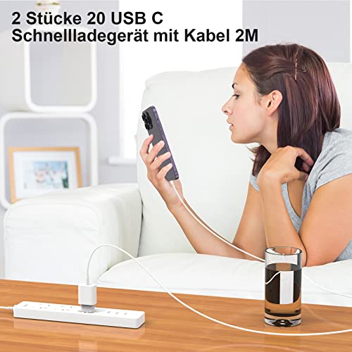 Caricabatterie veloce (2 Pack), 20W USB C Caricabatterie con Cavo di Ricarica Originale 2M, Spina di Ricarica USB-C Alimentatore con Tipo C Cavo