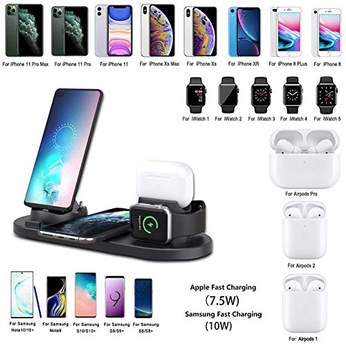 NZHK Caricabatterie Wireless, 6 in 1 Bacino del Basamento del Caricatore Rapido Compatibile con iPhone 8 11 XS Max XR per Samsung S9 S8 S7 Xiaomi Apple Osservare 5 4 3 2 Airpods PRO 2