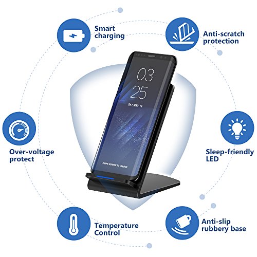 Compatibilità universale: Goditi l' ultima tecnologia di ricarica con il vostro nuovo telefono su questo caricabatterie Wireless. La modalità di ricarica veloce (1.4 volte più veloce rispetto allo standard wireless charger stand) Compatibile solo con Samsung Galaxy Note 8 S8, S8 +/S8 Plus, Note 5, Galaxy S6 Edge Plus, Galaxy S7, S7 Edge;
