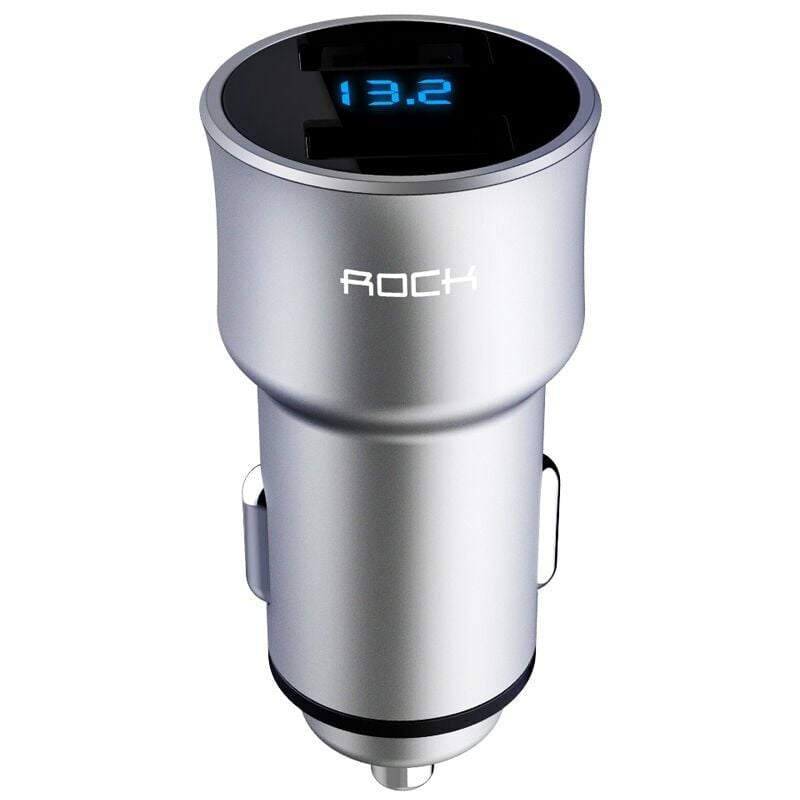Caricabatteria da auto doppio USB ROCK H2 con display a LED digitale 5V/3.4A Ricarica rapida in lega di alluminio per iPhone Samsung Caratteristica: Dimensioni compatte - Dimensioni portatili, perfette per gli spostamenti. Realizzato appositamente con lega di alluminio, ha un'eccellente resistenza alle alte temperature e alle basse temperature. Monitoraggio della tensione: il monitoraggio della tensione intelligente integrato con display digitale a LED in tempo reale mostra la tensione dello stato della tensione dell'auto. Protezione di sicurezza: mostra alternativamente tensione e corrente per fornire protezione da sovracorrente e cortocircuito. Ricarica rapida da 3,4 A: l'uscita della porta di consegna è 3,4 A. Una maggiore potenza in uscita mantiene il tuo dispositivo in carica ad alta velocità, impiegando meno tempo per caricarsi completamente. Doppie porte USB - Dotato di doppie porte USB con uscita singola fino a 3,4 A, ricarica rapidamente la maggior parte di smartphone
