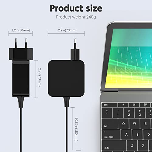 ✅【Specification】: Range di ingresso: 220-230V 50 Hz 0.7A/ Uscita: 20V 3.25A 65W / La lunghezza totale del cavo: 2M / Connettore: 4,0*1,7MM