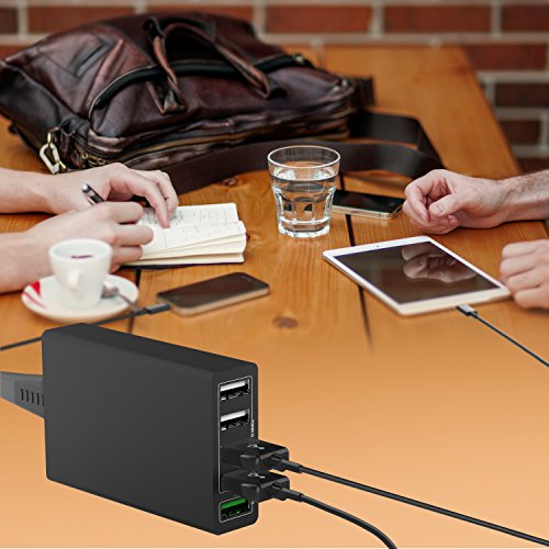 USB caricatore chnano Quick Charge 3.0 caricatore 5 porte con tecnologia Smart IC 50 W per iPhone, iPad, Samsung, LG, Huawei, HTC, ecc (Nero)