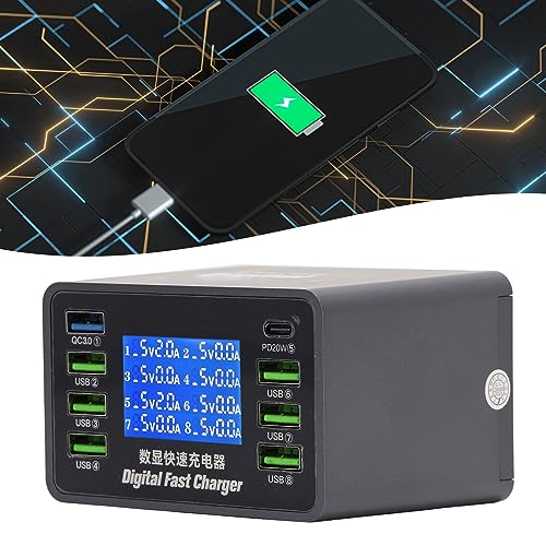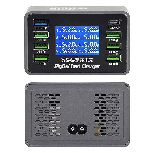 Caricatore USB Digitale Caricatore Portatile 50W 8 Porte QC3.0 PD Ricarica Rapida Caricatore USB Multiplo Caricatore per Cellulare 100‑240V (Spina europea 100‑240 V)
