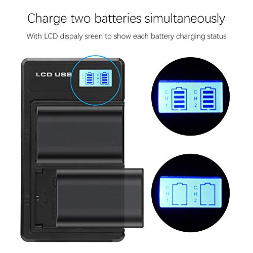 Fdit Caricatore USB con Doppio Slot per Batteria LP-E6 per Canon EOS 5D Mark II III IV 5DS 5DS R 6D 60D 6D Mark II 7D 7D Mark II 70D 80D, Display LCD retroilluminato