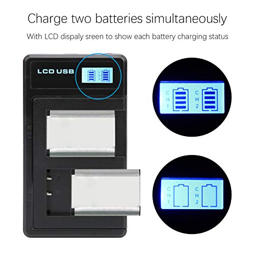 Fdit Caricatore USB con Doppio Slot per Batteria NP-BX1 per Sony Cyber-Shot DSC-HX300 DSC-HX50 DSC-HX50V/B DSC-RX100 II/III/M4/M5/M6/M7/Ⅳ/Ⅴ/Ⅵ/Ⅶ/VA HDR- CX405, Display LCD retroilluminato