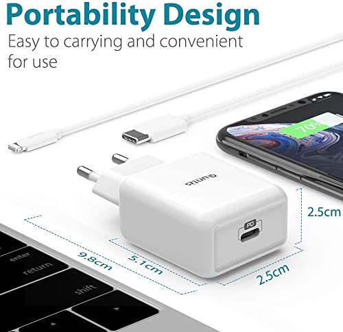 ⚡️【18W Caricabatterie Rapido iPhone + 2M Cavo USB-C】Caricatore USB C supporta Power Delivery 3.0 (Fast Charge) ed è particolarmente adatto per la ricarica rapida per iPhone SE 2020/11/11 Pro/XR/X/XS/XS Max/8/8 Plus/iPad Pro/Airpods Pro. Ricarica rapida PD 3.0, in grado di caricare il telefono fino al 50% in soli 30 minuti, garantendo la massima velocità di ricarica.