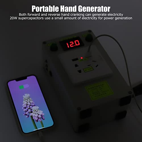 Caricatore a Manovella, Condensatori Sicuro 220V 12V 5V 20W Generatore Manuale Portatile Risparmio Energetico Con Indicatore Luce per Sopravvivenza in Backcountry per Campeggio per