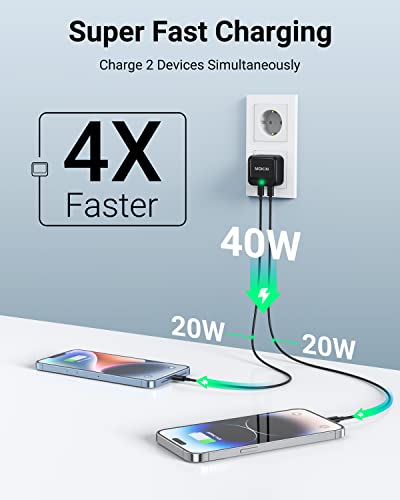 Caricatore USB C 40 W, MOKiN caricatore rapido 2 porte PD 3.0 caricabatterie compatibile con iPhone 1414 Pro 14 Pro Max 13 Pro 12 Pro 11XRX, Galaxy S22 S21 S20 Note 20 PPS, Pixel, MacBook,