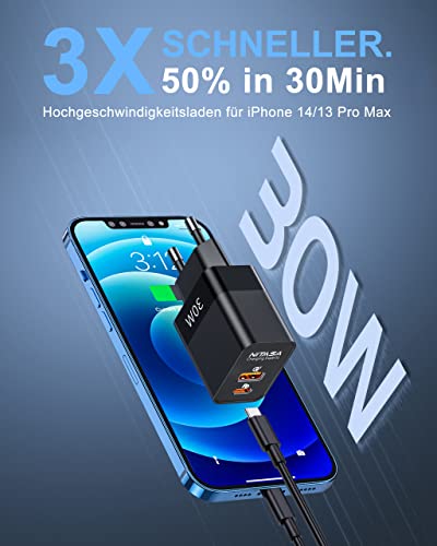 Caricatore USB C,NITASA 30W 2 Port PD alimentatore usb c presa caricabatterie rapido per iPhone 14 Plus/15 Pro Max/13/14/15 iPad, spina usb c caricabatterie(25W PPS)per Samsung Galaxy S23 Pixel 7 7a 8