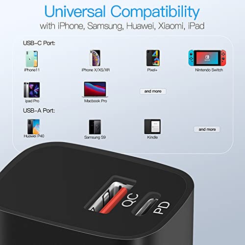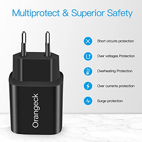 Caricatore USB C, Orangeck Presa USB Alimentatore, 2-Port Presa USB da Muro with PD20W Caricabatterie Multiplo e QC3.0 Ricarica Rapida Per iPhone 12 11 8 7 6 Pro X Max, Samsung, Huawei, iPad-Nero