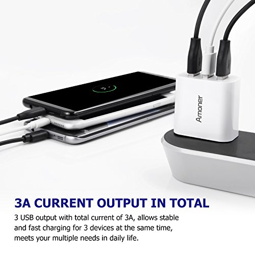 Specifiche: questo caricabatterie compatto, leggero adattativo di tutti i dispositivi alimentati da USB 5 V, compresi i dispositivi Android e Apple, una corrente fino a 3 A condivisa da 3 uscite USB, se la corrente di un'uscita supera 2 A o più, gli altri due smettono di lavorare per proteggere i vostri dispositivi.