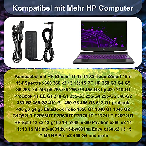Caricatore per PC portatile HP, adattatore AC per HP Pavilion 11 13 15, HP Elitebook Folio 1040 G1, HP Stream 13 11 14, HP Touchsmart 11 13 15, HP Spectre Ultrabook 13 ecc.