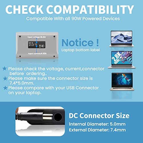 90 W - Caricatore portatile per Dell Latitude E5410 E5430 E5530 E5550 E6230 E6320 E6330 E6400 E6410 E6420 E6430 E6440 E6510 E6520 530 EU 6540 E7240 E7250 7390 7490 7480 5490 5580 5480 3190