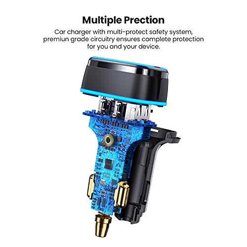 【Efficienza e sicurezzai】Caricabatteria da Auto Accendisigari USB è dotato di un chip intelligente per proteggere i tuoi dispositivi da cortocircuito, sovratensione, surriscaldamento e sovracorrente. Il materiale refrattario è contro la fusione e la combustione. Con le certificazioni FCC、CE、RoHS, Per garantire la completa sicurezza della tua auto e delle tue attrezzature.