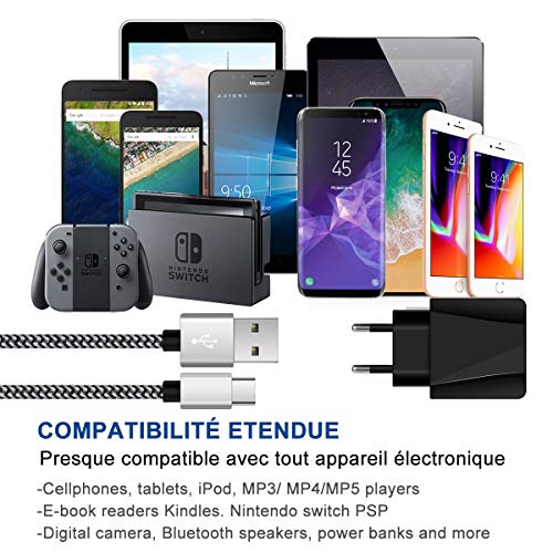 [Combinazione perfetta] Caricatore settore USB (5 V 2,1 A max) + cavo USB C (1,5 m) compatibile con Samsung Galaxy S10 S9 S8, Note 9 Note 8, A3 A5 A7 (2017), A3 A5 A7 (2018), Huawei P30 P20 P10 P9, OnePlus, Sony Xperia, Nintendo Switch e tutti i dispositivi dotati di connettore di tipo C. Si possono caricare due dispositivi mobili sulla presa.