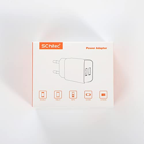 Caricatore USB da Muro con 2 Porte Caricatore da 5V/2.1A USB Caricabatterie USB Presa Adattatore USB Spina USB Universale per iPhone XS XR Samsung M20 S10 Huawei P30 P20 Lite, HTC, Tablet e Altro