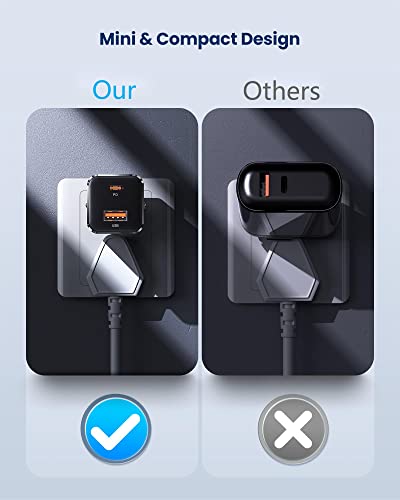 Design mini e compatto: straordinaria efficienza di ricarica con meno generazione di calore in un piccolo caricatore USB-C leggero, alloggiamento più piccolo del 50% rispetto a questi caricabatterie originali, che richiede poco spazio per il collegamento a qualsiasi tipo di presa. Un potente e pratico caricabatterie rapido per la casa, l'ufficio e i viaggi.