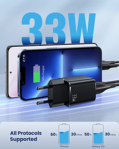 Ampia compatibilità: con 33 watt di potenza e qualità premium, questo caricabatterie USB-C PD con due porte garantisce una ricarica ad alta velocità per iPhone 12 / 12 Mini / 12 Pro Max / 11 Pro / 11 Pro Max / SE / XR/XS/ X/8;