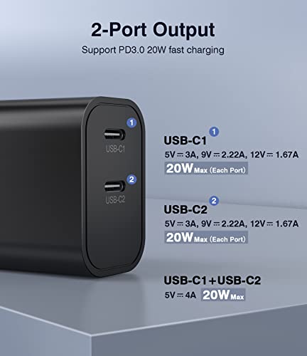 Caricatore USB C da 20 W, 2 porte PD, caricatore rapido USB C per iPhone, iPad, Samsung Galaxy, Google Pixel, Motorola, Huawei, OnePlus Kindle Cargador, caricatore cellulare iPhone, Fast Charger
