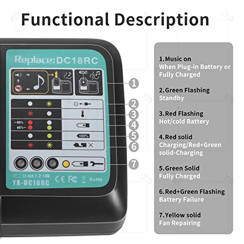 Sostituisce il seguente caricabatterie: Makita DC18RD DC18RA DC18RC DC18SF 196933-6