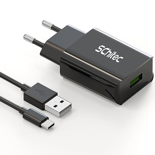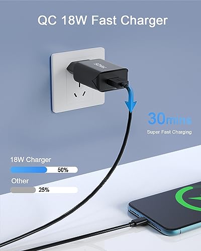 Caricatore USB, Caricatore Rapido 18W con 1M Cavo Quick Charge 3.0 Spina USB Compatibile con Galaxy S10 S9 Plus A50 A20e Note 9, Redmi Note 9S,iPad, Huawei (nero -QC 18W+ Cavo)