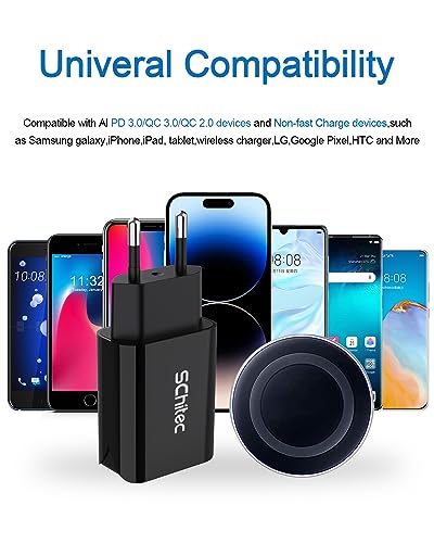 Supporta Multi Protocolli di Ricarica: Il caricabatterie USB 18W supporta Quick Charge 3.0 / 2.0, Galaxy AFC e Huawei FCP, come Galaxy Z Flip/ S23/S22/S21/S20/S10/ S10e/ S9 Plus/ S8/ S7/ S7 Edge/ S6/ S6Plus/ Note9/ Note8/ A8/ A5/ A21s/ A60/ A50/ A20e/ M30s/ M40/ M20/ M10s, Huawei Mate20 lite/ P30lite/ P10 Lite/ P9/ Mate8/ Honor 9, Redmi/ Note7/ Note 8 Pro/ Mix 3/ Mi 8 Pro/ Mi 9T, iPhone 14/13/11/ XR/ X/ 8, Google Pixel 7 Pro/6/6A, e-Reader Kindle, ecc.