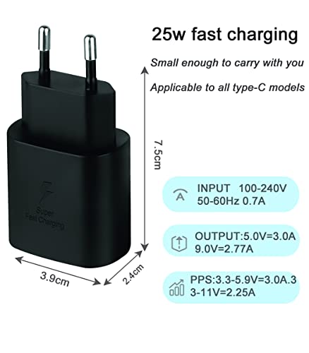 Questo adattatore di ricarica rapida USB C da 25 W è dotato della tecnologia PD che può caricare il tuo Galaxy S20 FE, S21, S21 Plus, S21 Ultra, S21 FE 5G, Galaxy S22, Galaxy Z Fold3 5G in soli 30 minuti, il 70% più veloce dell'alimentatore originale da 15 W.
