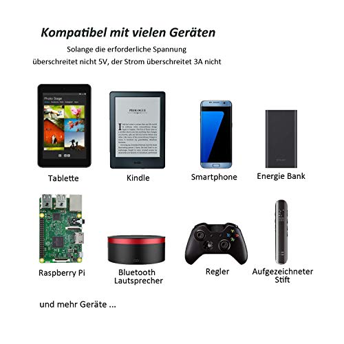 caricatore micro usb per caricabatterie Compatibilità: adatto per una vasta gamma di modelli: per Galaxie S7 S6 Kante S5 S4 S3 Vorsprung 3, Nokia Lumia 520 1020 920, Moto G, Google Nexus 5 7 10, Himbeer-PU 3 modello B, Raspberry Pi 2 modello B, lampone Pi A + B +, Kindle, Android Tablet, Android / Windows Smartphone, batteria esterna, più dispositivi con porta micro USB