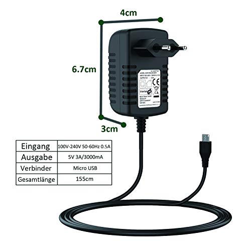 NEUE DAWN Caricatore 5V 3A per Raspberry Pi 3 Pi 2 Modele b Android Tablet Android Windows Mobile Phone Adattatore Caricatore Caricabatteria Alimentatore 5V 3A 3000ma Micro USB Caricabatterie