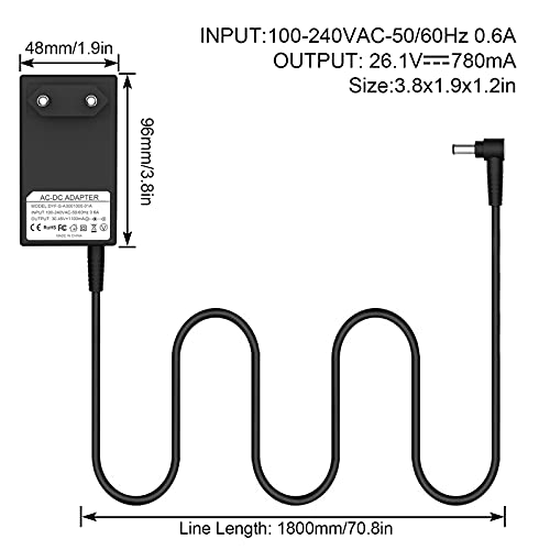 ★ Corrente in ingresso: AC 110 V - 240 V 50 - 60 Hz 0,6 A, uscita: DC 30,45 V 1100 mA. Lunghezza cavo: 1,8 m spina europea