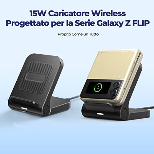 Caricatore Ricarica Wireless 15W Compatibile con Samsung Z Flip, Z Flip 5G, Z Flip3 5G, Z Flip4 Fast Certificato