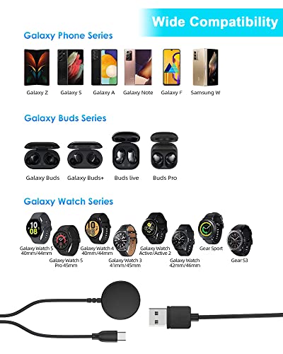 ⌚【Durevole e Sicuro】- Questo caricabatterie per watch Samsung Galaxy in stile è costituito da un caricatore per watch intelligente da 6.9ft/2.1m magnetico e cavo di tipo c, è realizzato con materiali TPE, è stato testato per oltre 10000 volte ed è durevole. Il caricabatterie Galaxy è sicuro e affidabile, il chip integrato di protezione da sovracorrente, sovratensione, cortocircuito e sovratemperatura offre un ambiente sicuro per la ricarica.