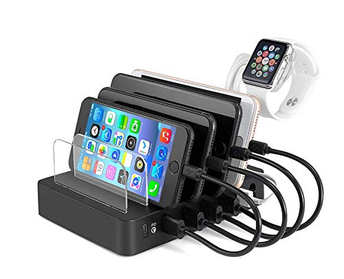 New Net - Caricatore Stazione di Ricarica Universale con Supporti da 60W 6 Porte (1 Type C 1 USB 3.0 Qualcomm Ricarica Veloce 4 USB) per Smartphone Huawei Mate Honor Xiaomi Mi Redmi LG Motorola