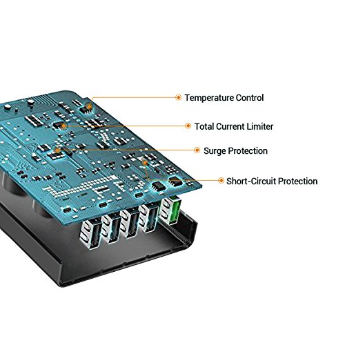 Caricatore USB da Muro,Turata Quick Charger 3.0 Caricabatterie Viaggio Portatile da 5 Porte USB Wall Charger per iPhone, iPad, Smartphone Samsung, HTC, LG, Huawei, Tablets, Dispositivi Bluetooth e GPS, ecc