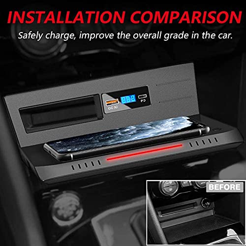 Caricatore Wireless per Auto,per Installazione accendisigari VW Tiguan Center Console 2018-2021, con Porta USB QC3.0 e Porta PD da 18W 15W Qi Wireless Quick Pad di Ricarica per Cellulare