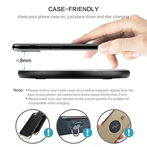 [safety protection]: Built-in, sovratensione, corto circuito - sovracorrente, protezione surriscaldamento, che può prevenire efficacemente lontano da potenziali pericoli, approvato, FCC, RoHS e CE. È normale per il telefono per ottenere più caldo durante la ricarica wireless. Non caricare tramite telefono casi metallici o casi più spessa 3 mm.