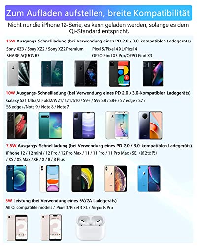 Sicuro e affidabile: la stazione di ricarica induttiva supporta la funzione di ricarica wireless Qi. Il caricabatterie wireless magnetico ha una distanza di rilevamento di 8 mm. Può riconoscere automaticamente il dispositivo e offre 4 modalità di ricarica rapida adattive. Protezione da sovraccarico, surriscaldamento, cortocircuito e rilevamento di corpi estranei possono proteggere il dispositivo.