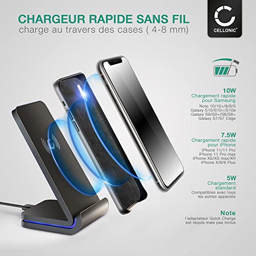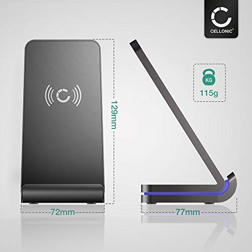 Caricatore wireless rapido per telefoni abilitati Qi compatibile con Samsung Galaxy S21, S20, iPhone 13, 12, 11, P30 Pro, Pixel 6, Mi 10 Ricaricare velocemente senza fili 10W marcato CELLONIC®