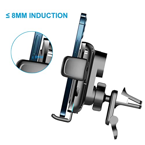 Supporto Caricabatterie Auto per Telefono con Design di Protezione: l'interno del braccio del morsetto e vassoio sono realizzati con cuscinetti in silicone antiscivolo e antiurto, evitare di graffiare il telefono. La forza di serraggio fino a 5 kg blocca saldamente il telefono, impedisci al telefono di scuotersi o scivolare fuori e protegge il telefono da danni anche su strade sconnesse ad alta velocità.Ti consente di goderti il divertimento della ricarica wireless durante il viaggio in auto.