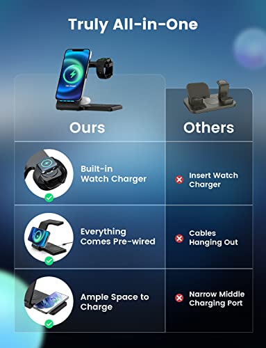 Installazione Semplice, Ricarica Facile: A differenza di altri wireless charger, non è necessario collegare il cavo di ricarica esistente al supporto o installare un caricatore per Apple Watch separato nel dispositivo per rendere il supporto di ricarica wireless. Inoltre, è incluso un adattatore da parete da 30 W, che può aumentare notevolmente l'efficienza della ricarica. È sufficiente posizionare i dispositivi sul caricabatterie per avviare una ricarica fluida ed efficiente al contatto.