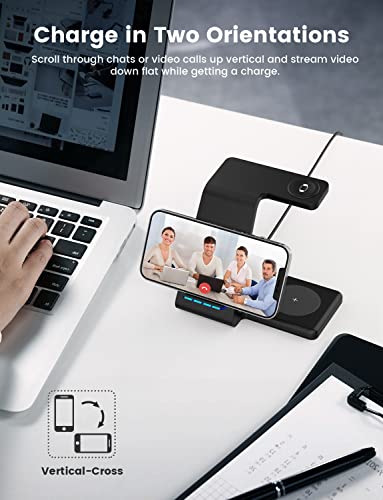 Caricatore wireless 4 in 1: SOWINK caricatore wireless per iPhone 4-in-1 include un doppio pad di ricarica wireless per 2 telefoni, un supporto di ricarica iWatch per Apple Watch 7/6/5/4/3/2/SE e un piastra induzione per AirPods Pro/ AirPods 2 (con cover di ricarica wireless), tutti dotati di funzionalità di ricarica approvate Qi. È possibile caricare due telefoni, un Apple Watch e un AirPods contemporaneamente in un unico dispositivo con un solo cavo.