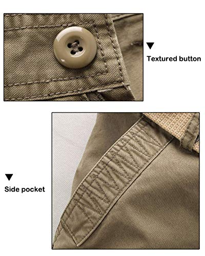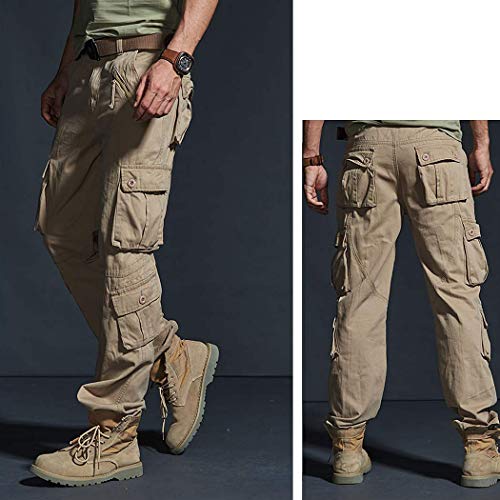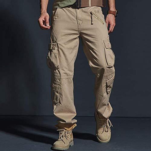 ZKOO Uomo Carico Pantaloni con Multi Tasche Lungo Cargo Pantaloni Pantalone da Lavoro Cotone Sportivi Pantalone Calzoni All'aperto Casual Cachi